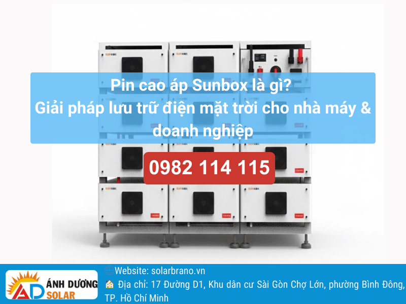 Trong xu hướng tối ưu chi phí năng lượng và đảm bảo tính liên tục cho hoạt động sản xuất, giải pháp lưu trữ điện mặt trời đang ngày càng được các nhà máy và doanh nghiệp quan tâm. Việc kết hợp hệ thống điện mặt trời với pin lưu trữ không chỉ giúp tận dụng tối đa nguồn năng lượng tái tạo mà còn góp phần ổn định nguồn điện, giảm phụ thuộc vào lưới điện quốc gia. Nổi bật trong nhóm giải pháp này, Pin cao áp Sunbox được phát triển dành riêng cho các hệ thống điện mặt trời quy mô vừa và lớn, đáp ứng tốt yêu cầu về công suất, độ an toàn và hiệu suất vận hành dài hạn. Trong bài viết hôm nay, Ánh Dương Solar sẽ phân tích chi tiết khái niệm pin cao áp Sunbox, cấu trúc hệ thống, nguyên lý hoạt động, các lợi ích nổi bật và lý do vì sao giải pháp này đang được nhiều nhà xưởng, khu công nghiệp và doanh nghiệp sản xuất lựa chọn.